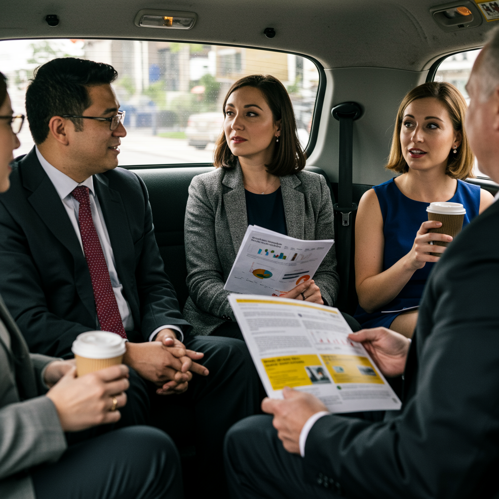 The cab ride back to the station. Everyone's quietly replaying the pitch in their